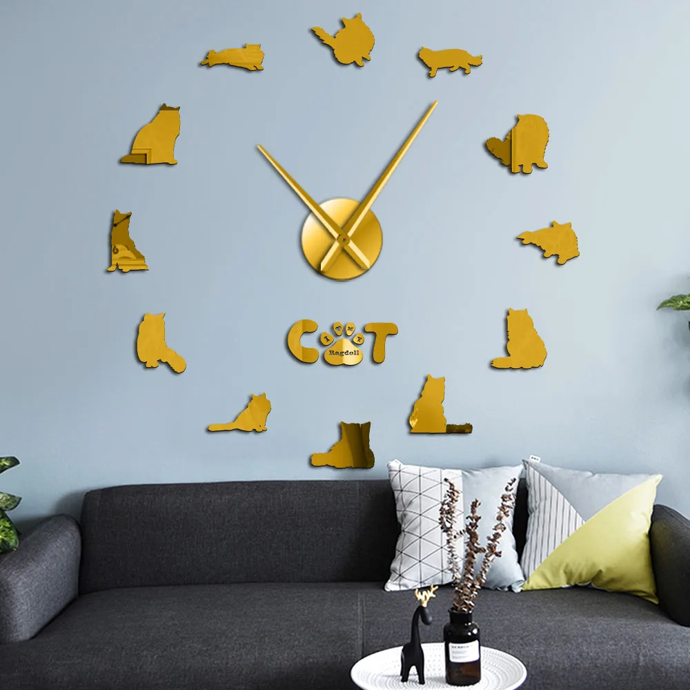 3d-часы Ragdoll настенные с зеркальным эффектом, бесшумные Самоклея...