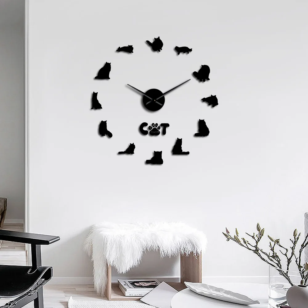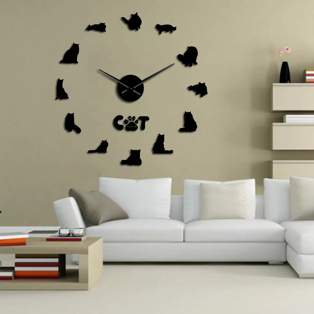 Нежные гигантские настенные часы Мейн-енот, сделай сам, Кот, Силуэт...