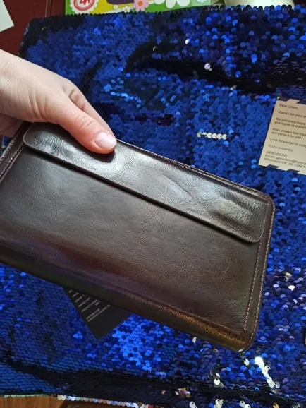 Нормальный клатч за эти деньги, пришёл в Иркутск за 2 недели, сделан качественно никаких кривых швов, торчащих ниток и прочего, внутри также качественно все сделано, замки работают мягко. Цвет думал, что темнее, ближе к светло коричневому...