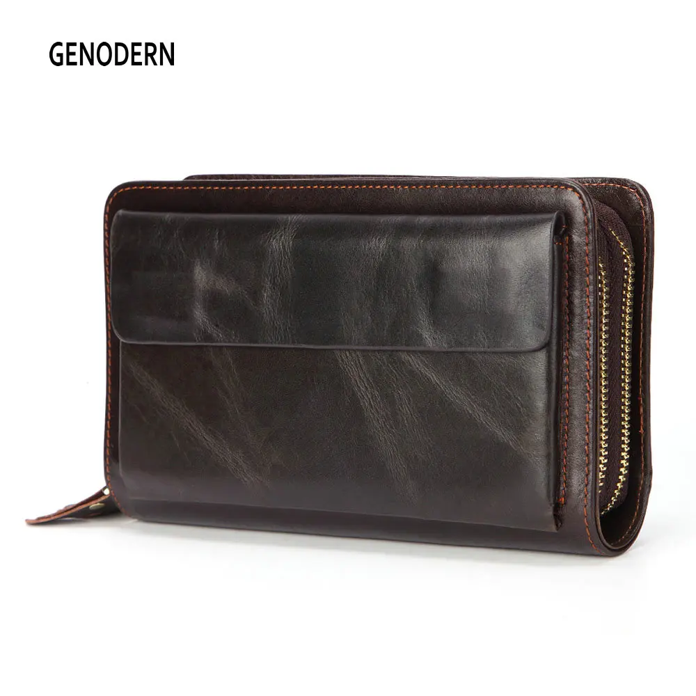 Мужской клатч из натуральной кожи, с двумя молниями