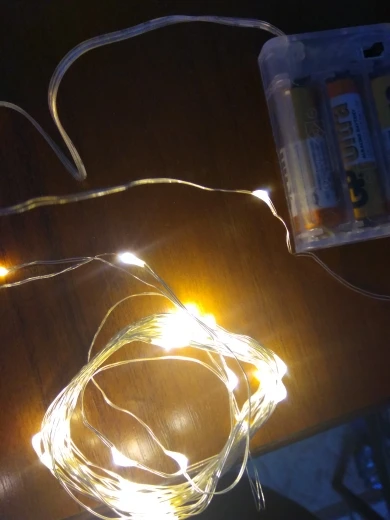 Боялась, что не дойдёт до нового года, но доставка удивила - три недели и я счастливый обладатель маленькой переносной гирлянды. Работает от трех пальчиковых батареек (в комплекте не идут), светит ярко. Отдельное спасибо за милый подарочек!