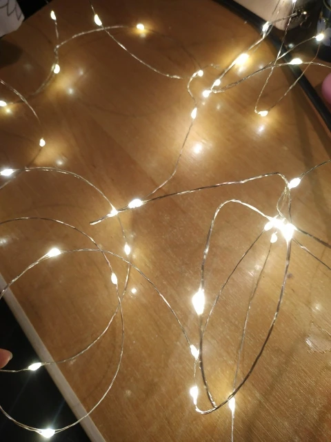 На бОльшее не расчитывал - светодиодики светятся. Взял вариант с питанием от USB. Цвет теплый белый - огоньки желтенькие, на фото вышли сильно белее.