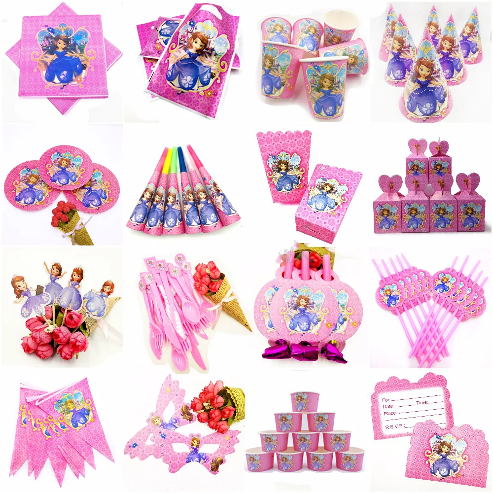 10 детских одноразовых столовых приборов принцессы Софии с днем рождения, вечеринок, праздничных декораций для маленьких девочек