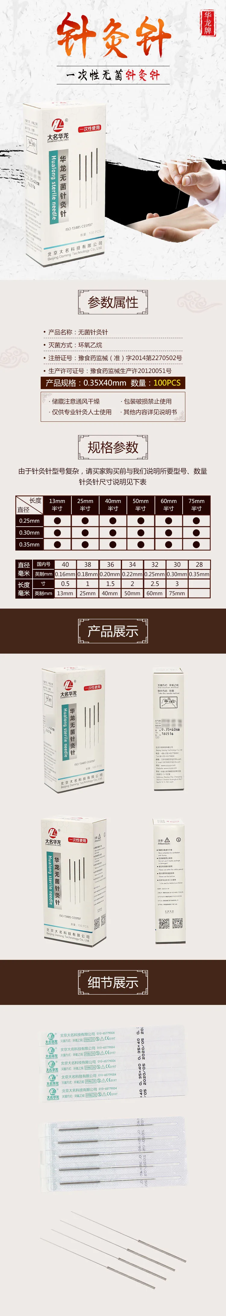 Одноразовые иглы hualong 100стерильные иглы для иглотерапии0,180,25 мм, 0,30 шт., 0,35 шт.