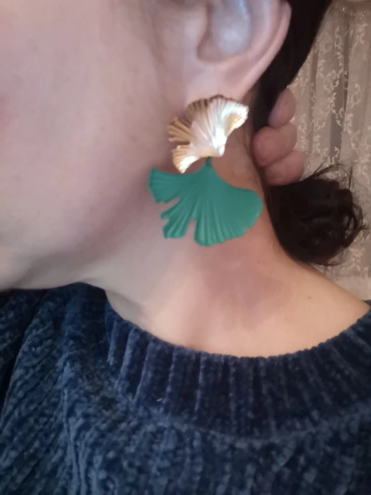 Серьги крупные, зелёная часть на ощупь бархатистая, замочек качественный. По весу нетяжёлые, но если уши очень нежные, я бы не стала такие брать. Из минусов - низ серёжки прикреплён на мелкую петельку и всё время проворачивается, в анфас зелёной половинки почти не видно. В целом вещь качественная и необычная, рекомендую. До Ростова-на-Дону шли почти 2 месяца.