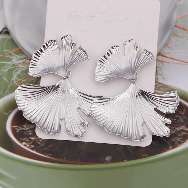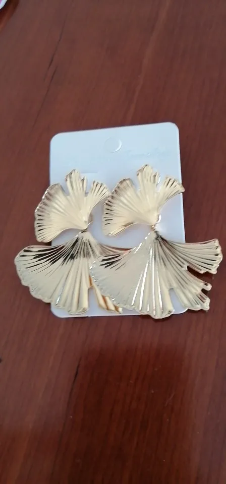 Богемные геометрический золотистый висячие серьги в форме листьев гинкго билоба для женщин, эффектные ювелирные аксессуары серёжки панк