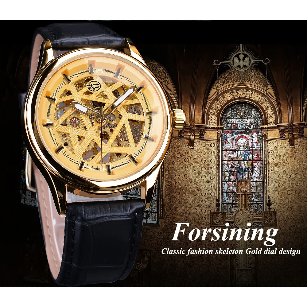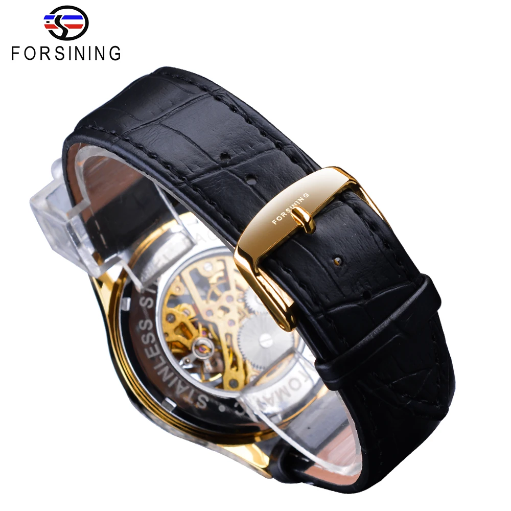 Часы наручные Forsining Мужские механические, классические брендовые Роскошные, с механизмом, золотистые, в стиле ретро