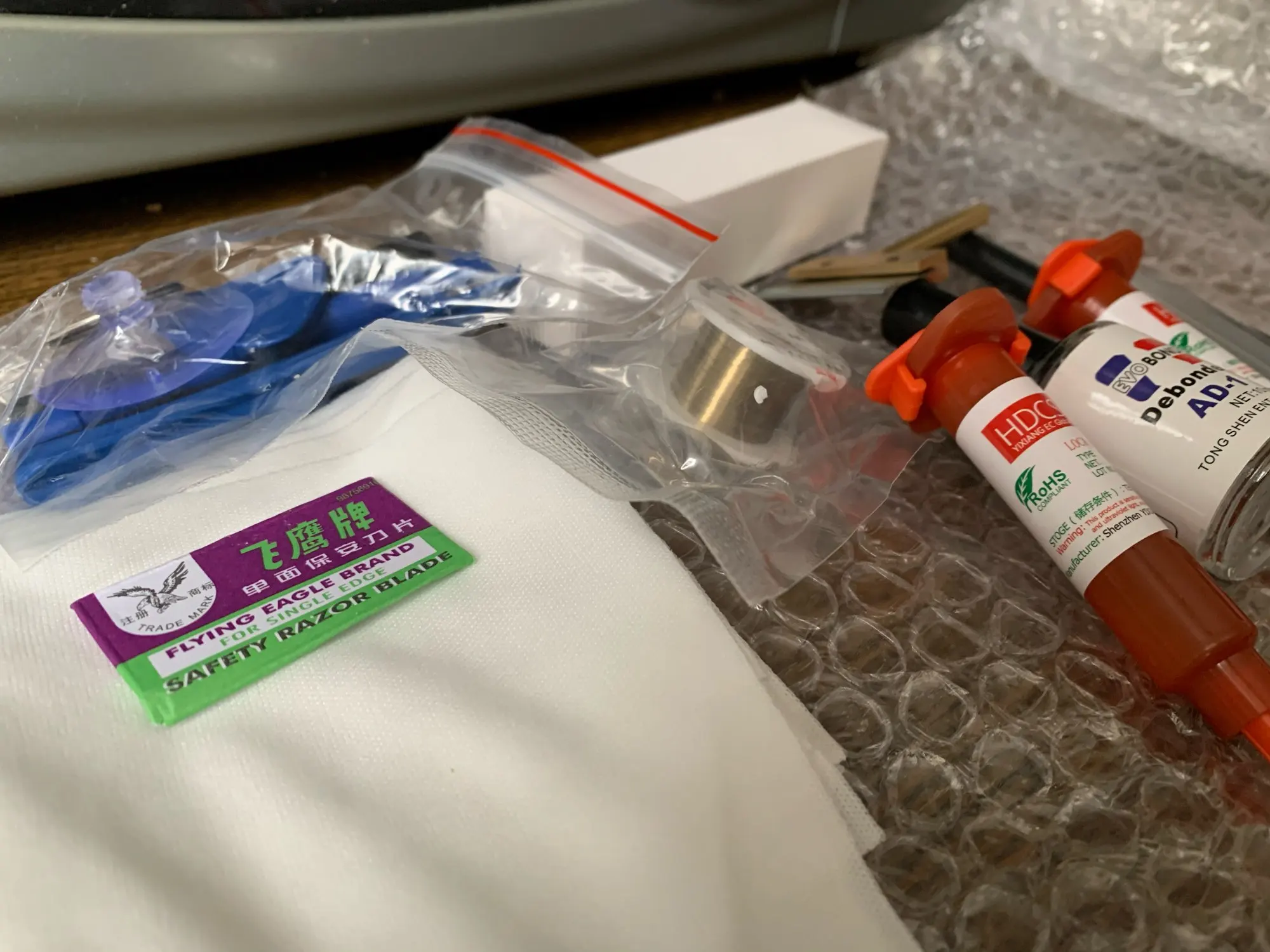 Продавец расстроил. Сначала отправил товар через CDEK, и он практически не отслеживался, потом была целая история с получением ы этой в высшей степени дурной конторе. Товар не совсем соответствует заказанному набору. Вместо двух синих штук положили одно запасное толстое лезвие, вместо какой-то пипетки с черным низом вообще непонятную штуку. Все есть на фото. Оцените ремешок и оголовок фонарика. Надеть невозможно. Вторую дырку, наверное, надо сверлить самому )) Удалителя клея 10 мл. Но устраивать спор за копейки нет желания, оставлю лучше соответствующий отзыв. Шел товар до Москвы около месяца.