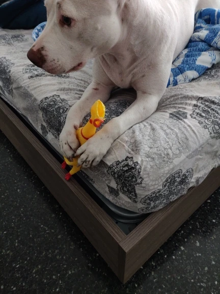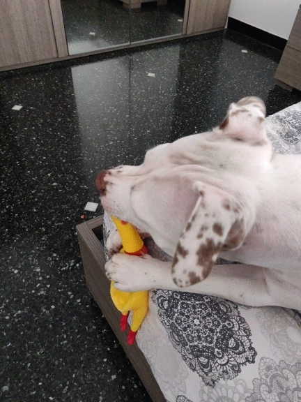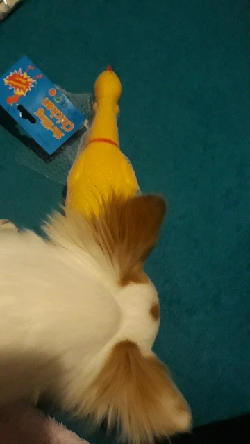 Она не резиновая. Мягкая пластмасса. Собака ее испугалась.