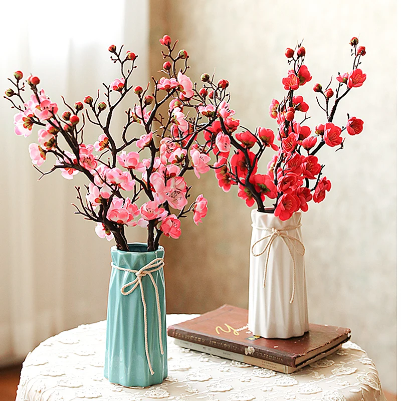 Цветы сливы, вишни, искусственные шелковые цветы, ветки деревьев сакуры, декор для домашнего стола, гостиной, сделай сам, свадебные украшения