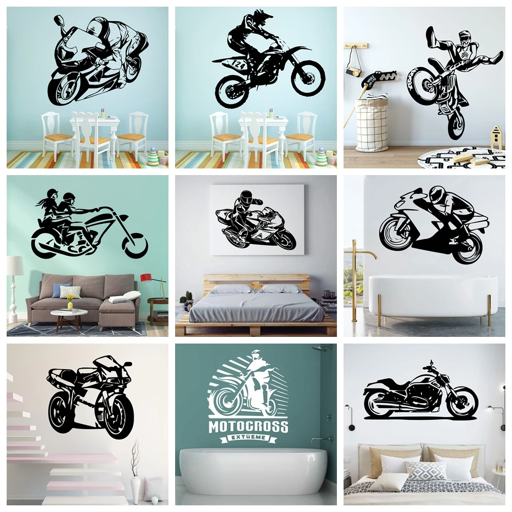 Красочные мотоциклетные виниловые обои, рулон мебели, декоративные настенные наклейки для детей, настенные наклейки