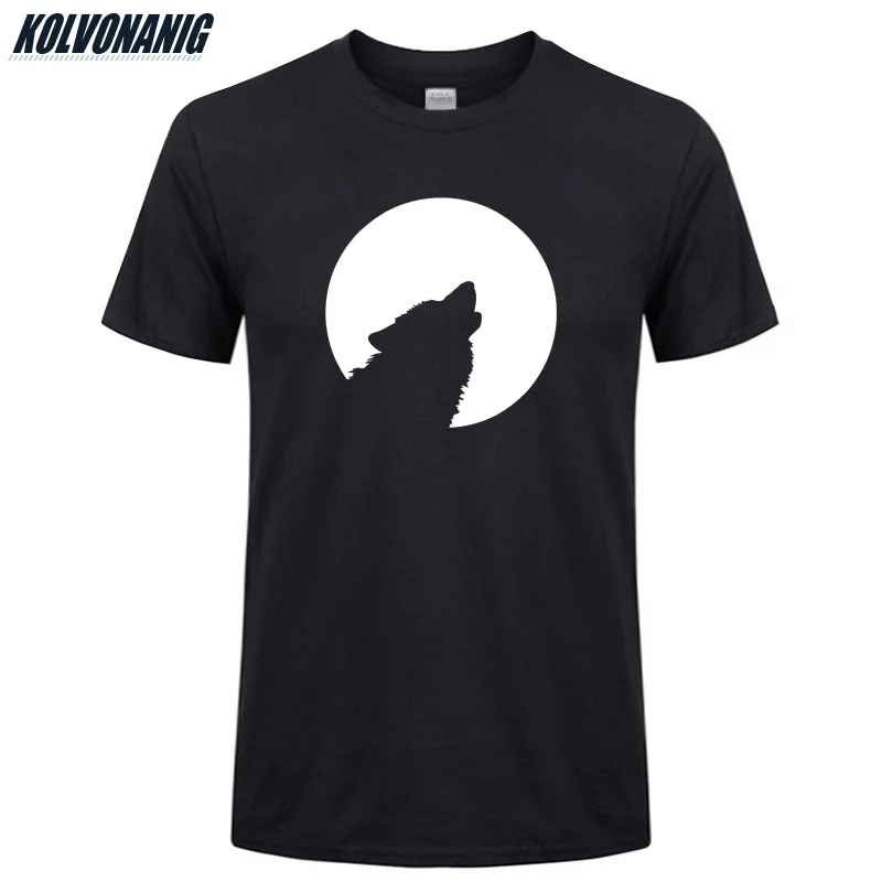 Мужская хлопковая футболка с короткими рукавами, Повседневная футболка большого размера с забавным принтом волка Хоя до Луны, лето 2021