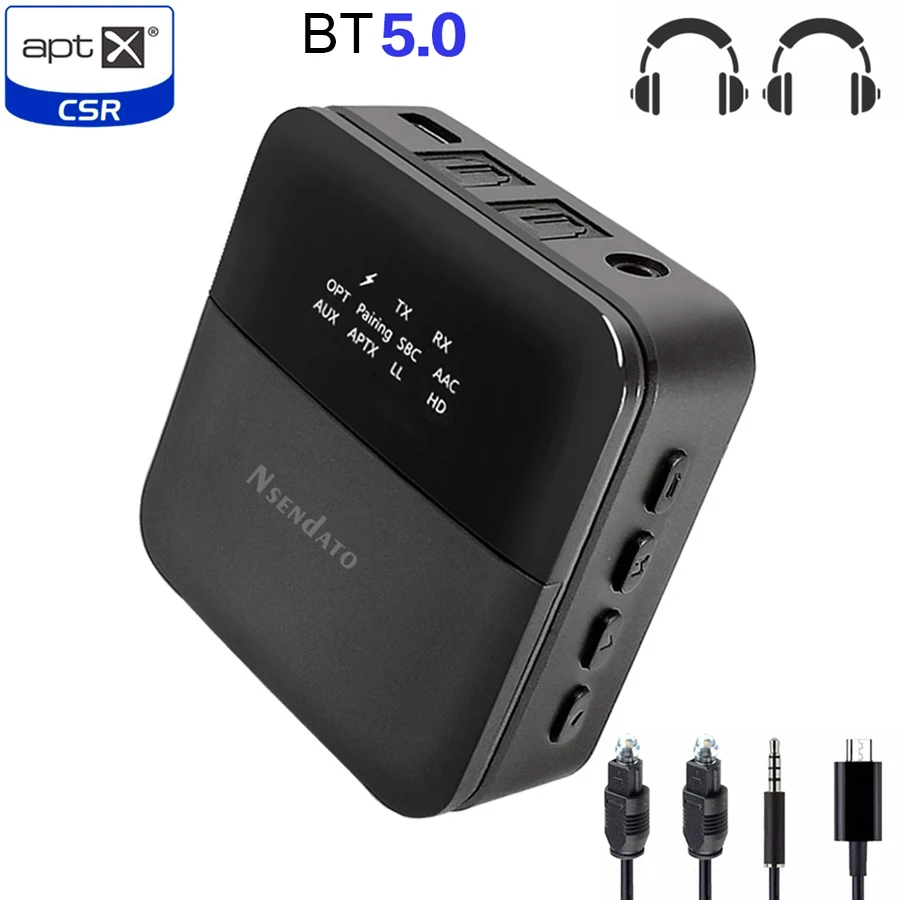 Беспроводной приемник аудиопередатчика wlieless BT V5.0, 3,5 мм, AUX, aptX HD, оптический адаптер автоматического включения с низкой задержкой для ТВ/дома