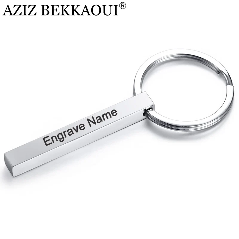 Брелок AZIZ BEKKAOUI с гравировкой имени, простой стиль, подвеска из нержавеющей стали, кольцо для ключей с логотипом, Модная бижутерия в подарок