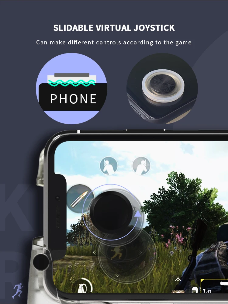 С контроллером движения PUBG вы можете использовать указательный палец, чтобы удерживать кнопку во время движения, поворота, прицеливания и съемки, устраняя хлопот с использованием большого пальца для всех операций.Подключите телефон с помощью пускового кнопки, без питания и привода, обычного игрового контроллера, уменьшите время реакции, дайте вам быстро снимать с врагами. Новый дизайн не блокирует карту с земли.Очистите поверхность, чтобы предотвратить внезапное проскальзывание, Избегайте пота на экране и чувствуйте себя превосходно. Легкий, компактный, подключи и работай в любое время и в любом месте.