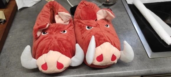 Спасибо за тапки! Приятный на ощупь материал, качественные швы. У одно тапка одно ухо оказалось вшито светлой стороной назад, т.е. задом наперёд. Быстрая доставка, есть возможность забрать посылку в "Пятёрочке".