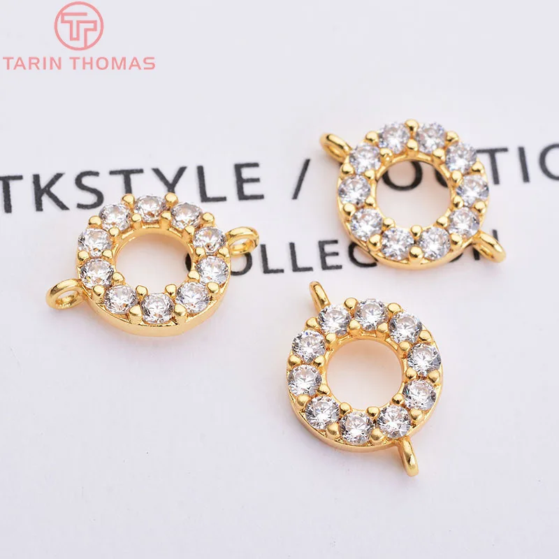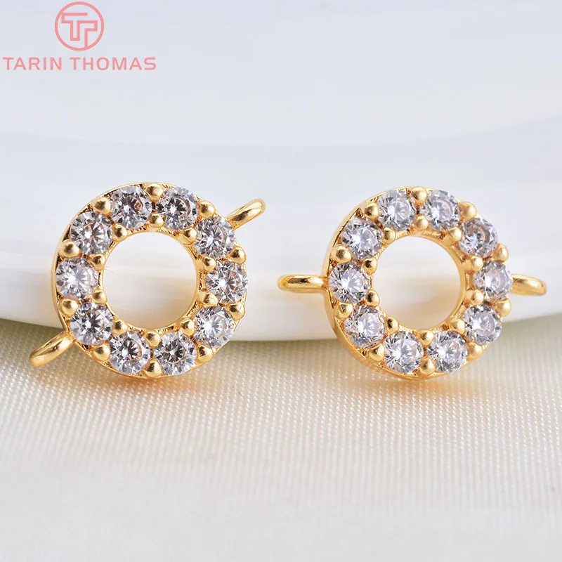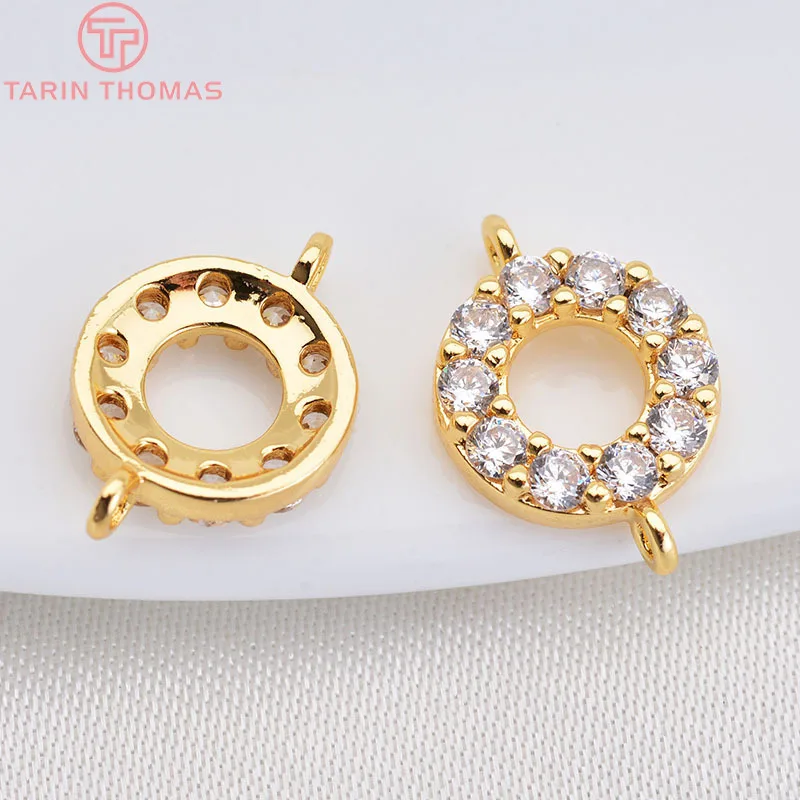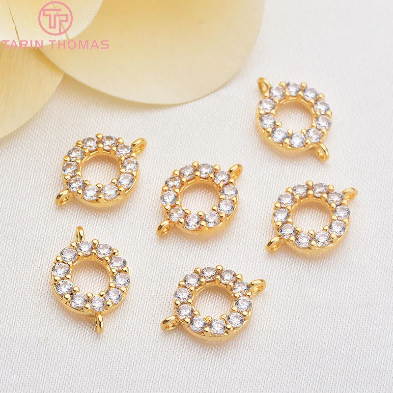 (1851)4 шт. латунь с покрытием 24-каратным золотом и цирконом, Круглый Циркон с 2 отверстиями, соединительные подвески, ювелирные аксессуары