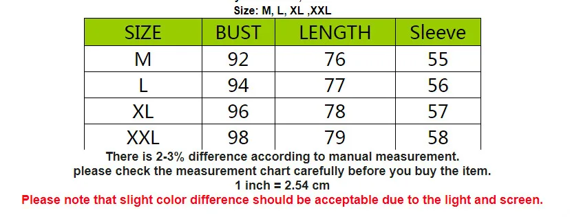 Цвет: черный, красныйСтиль: Модный, повседневныйРазмер: M, L, XL ,XXLРазмерБюстДлинаРукавМ927655L947756XL967857XXL987958Существует разница в 2–3 см связанная с измерением вручную.Прежде чем купить эту товарную позицию, просим тщательно свериться с таблицей размеров.1 дюйм = 2,54 смОбратите внимание что небольшая разница в цвете считается приемлемой. Это может быть связано с положением источника света и с настройками экрана.Что вы получаете:1 хРубашки в клеткуПредварительный просмотр: