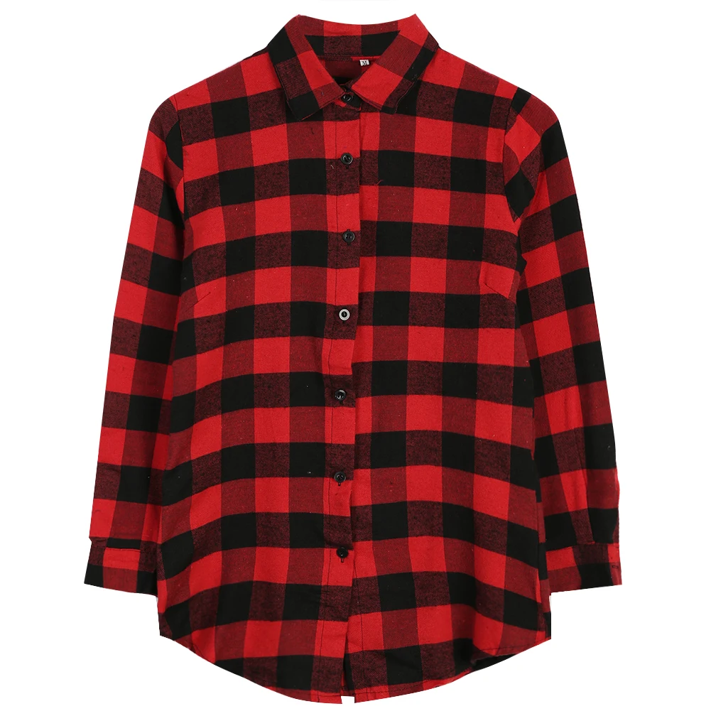 Женская клетчатая блузка Over size d, повседневная однобортная рубашка с отложным воротником и длинным рукавом, размера плюс размер