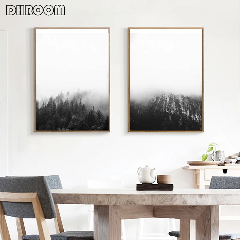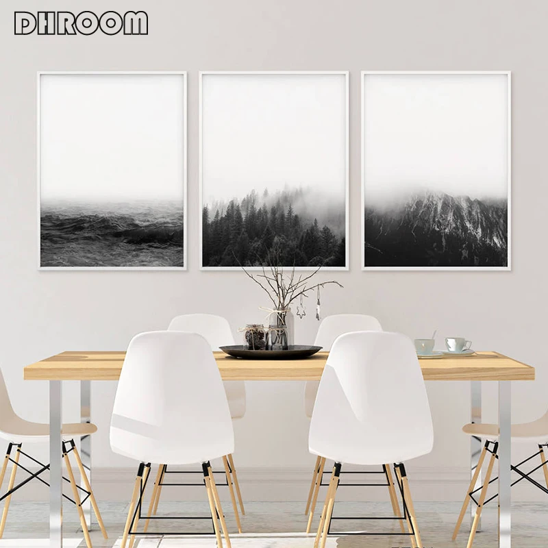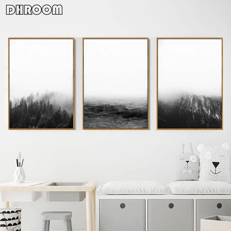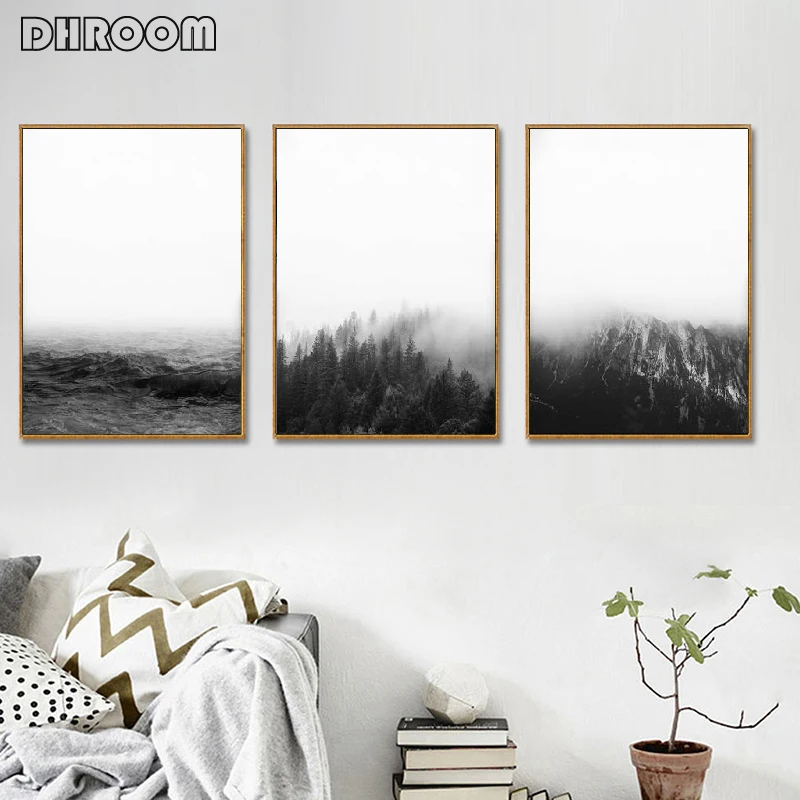 Современный пейзаж, настенное искусство, минималистский холст, плакат, Настенная картина, черно-белая природная живопись, принты, скандинавский рисунок