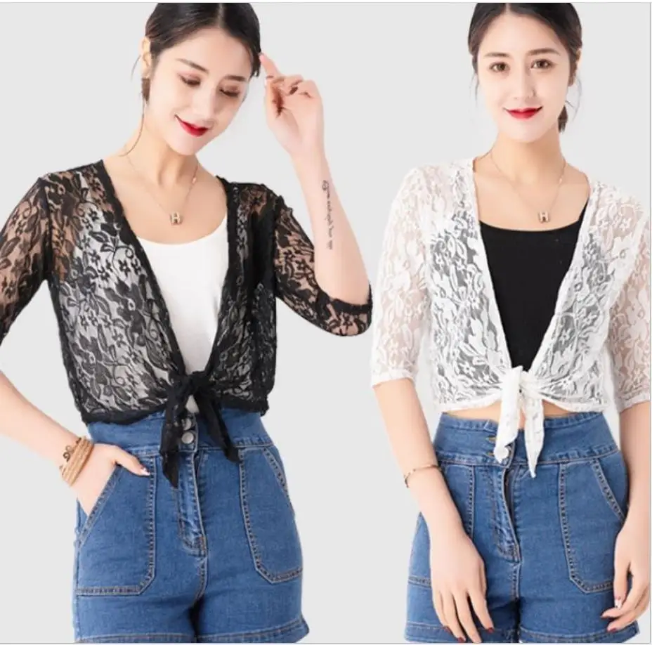 Кружевная шаль Асимметричный жакет 2020 летнее короткое пальто верхняя тонкая кардиган с длинными рукавами Солнцезащитная одежда дикая рубашка блуза