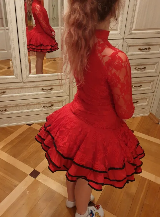 2019 кружевные новейшие сексуальные бальные платья платье для танго, сальсы, латинских танцев детское красное черное кружевное платье для девочек с длинным рукавом