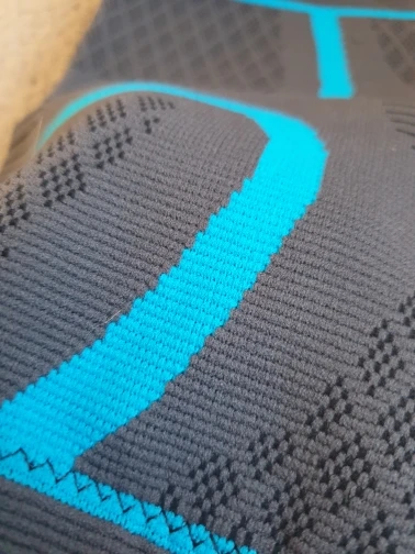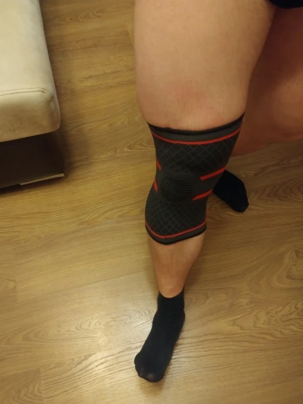 Качество хорошее, нигде ничего не торчит. Тянется норм. Есть "пластиковый" запах, но на улице не критично. Размер "по сетке" подобрал довольно точно. Фиксации, правда, при использовании особо не чувствую, но колено после тренировки стало ныть меньше, чем раньше.