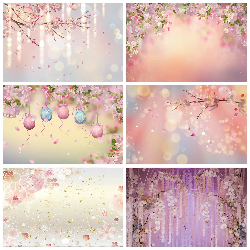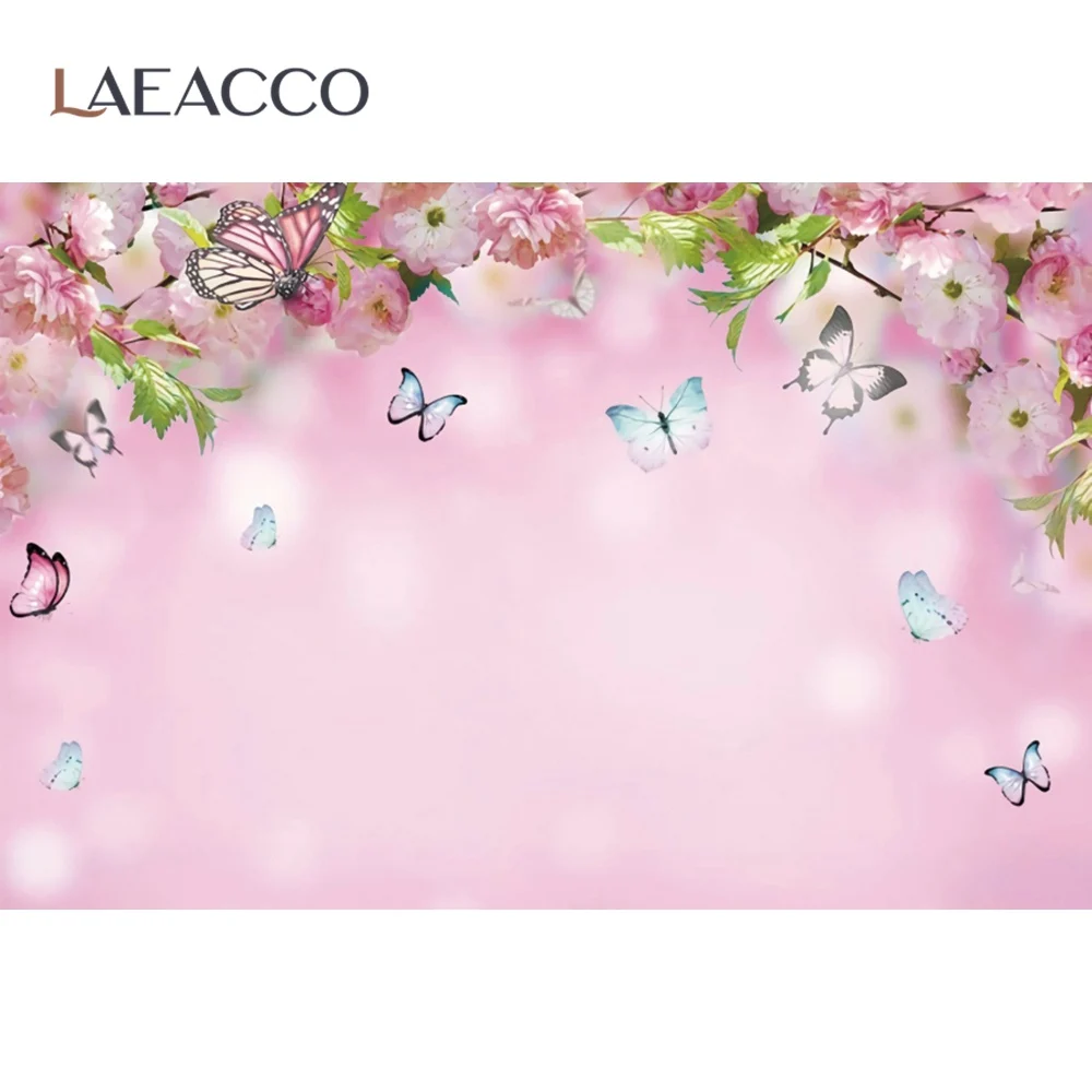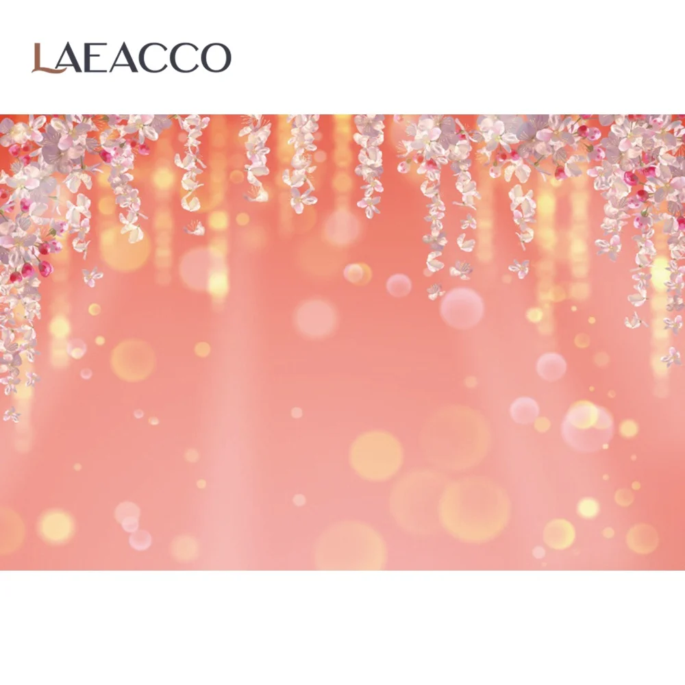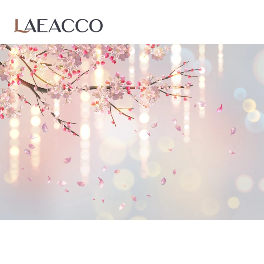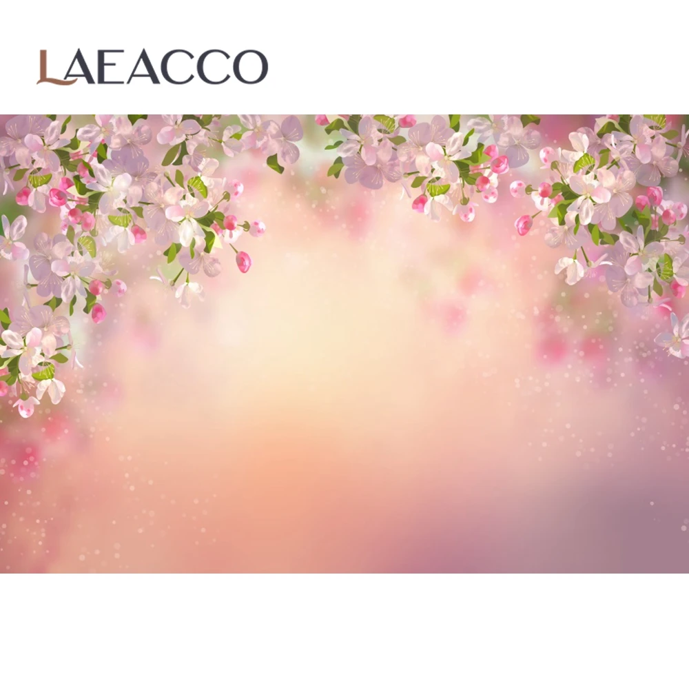 Фон Laeacco для фотографирования новорожденных с изображением розовых весенних вишневых цветов сакуры в горошек