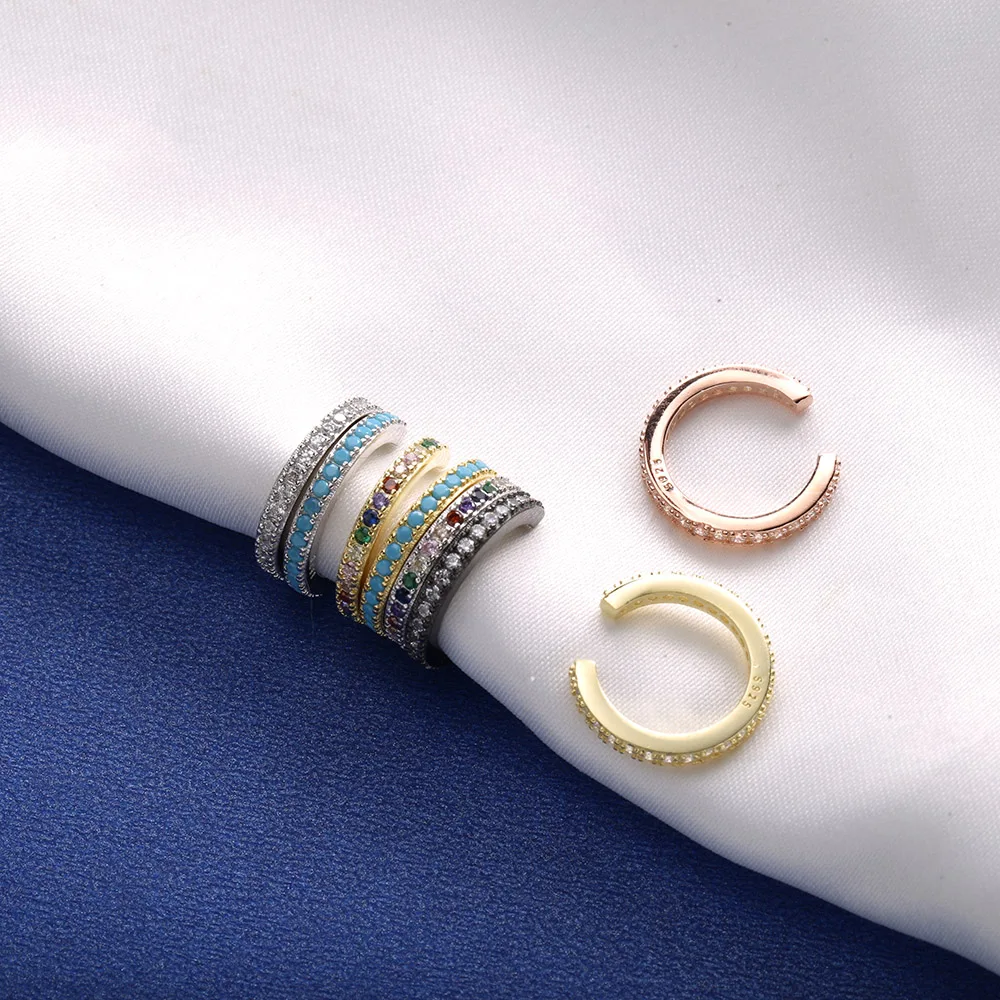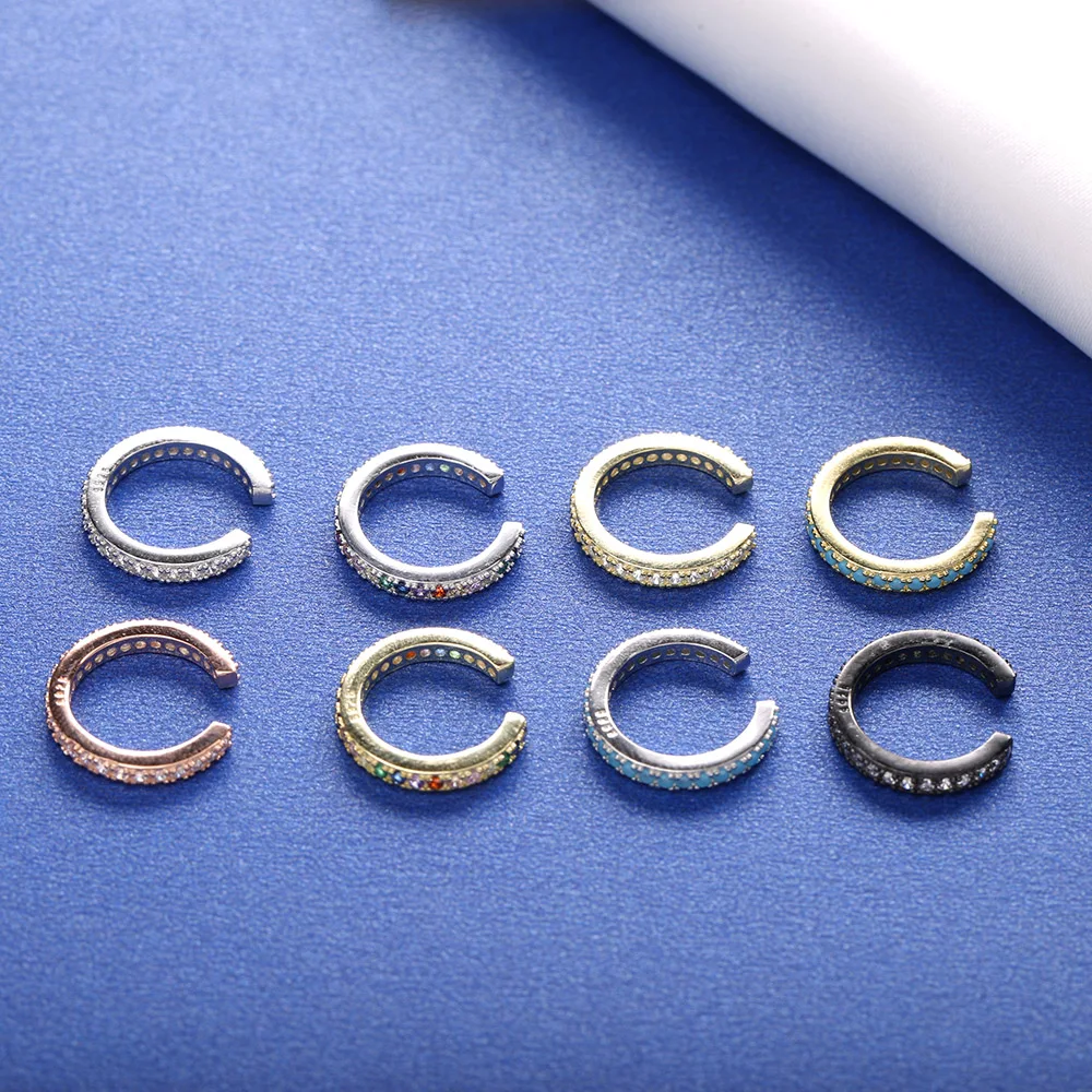 Женская Блестящая манжета-кафф с кристаллами из серебра 925 пробы, 1 шт., серьги-клипсы с цирконом