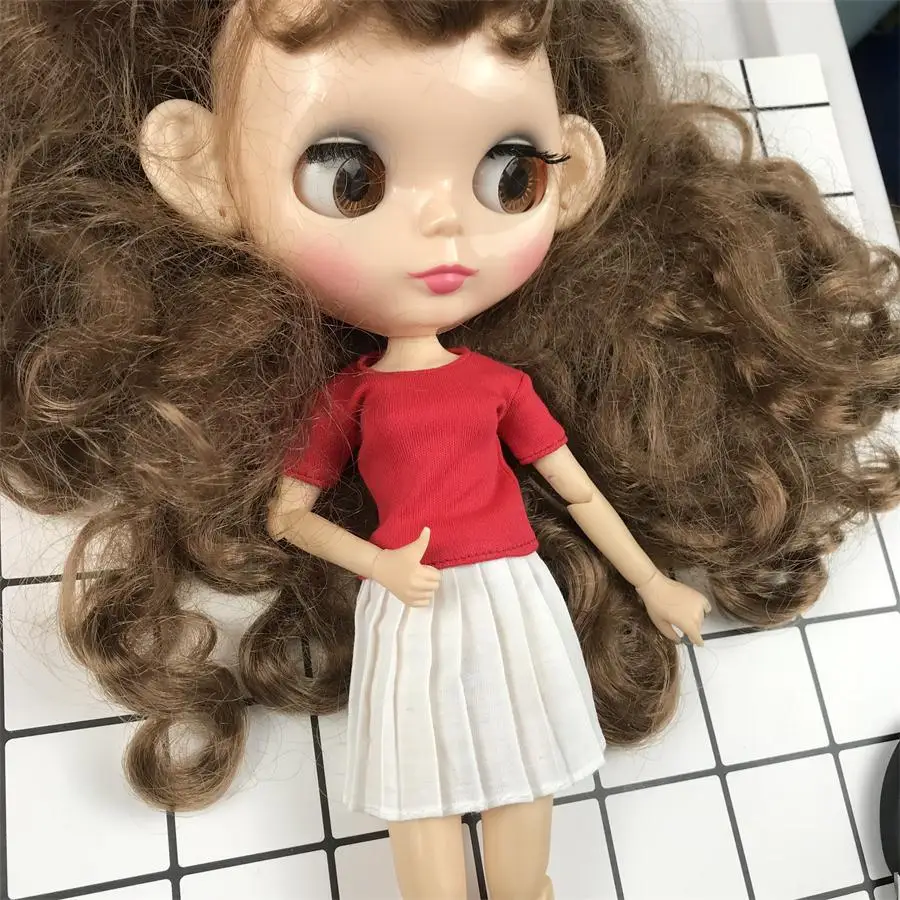Одежда Blyth, 1 шт., белаяРозоваякраснаясераячерная, короткая Классическая футболка для куклы Момоко, обисту, Ликка, FR 16