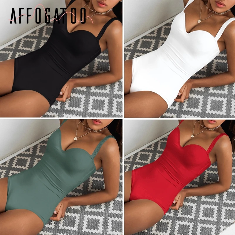 Сексуальный облегающий белый купальник Affogatoo с глубоким v-образным вырезом, Женская цельная летняя пляжная одежда, купальник, повседневный короткий купальник для дам