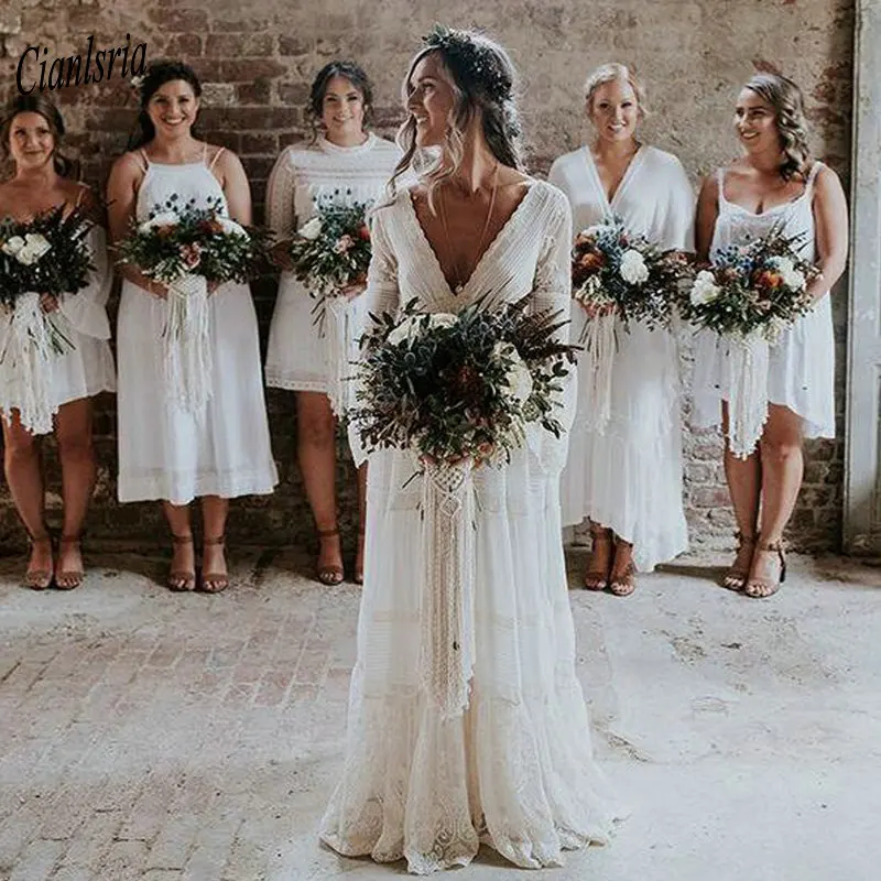 Женское богемное платье с V-образным вырезом и длинным рукавом
