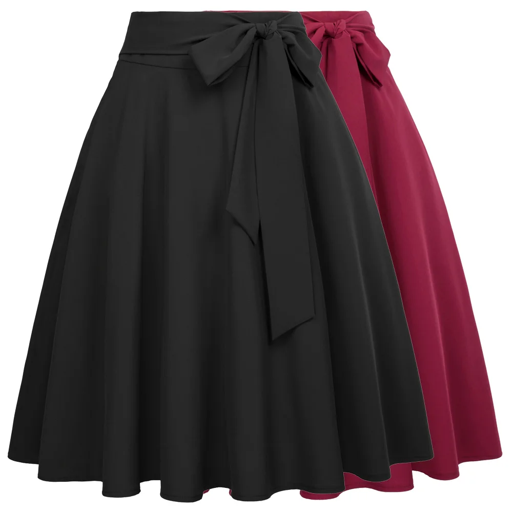 Юбка трапециевидная женская, однотонная, с высокой талией, украшенная бантом, в стиле ретро