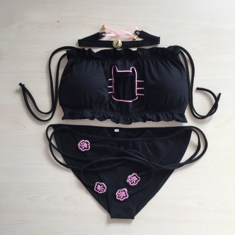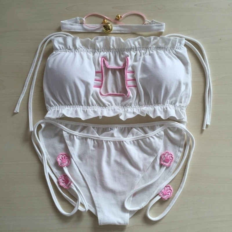 Сексуальный костюм в японском стиле с изображением кошки, с вырезом под ключ, трусы, колье, воротник, аниме, косплей, комплект нижнего белья для женщин