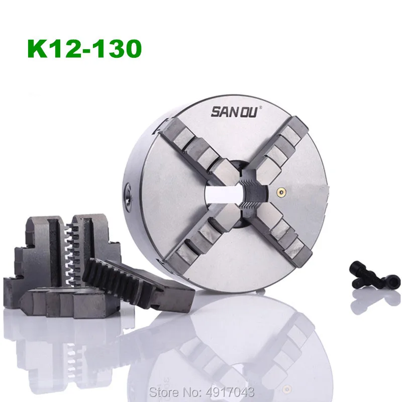 SANOU 130 мм для сверлильного фрезерного станка, деревообработка, 4 челюсти, 5 дюймов, K12-130, токарный патрон, Самоцентрирующийся, закаленная сталь, фрезерный станок с ЧПУ