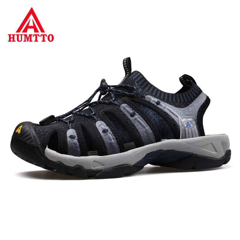 Мужские пляжные сандалии HUMTTO, летняя Нескользящая износостойкая Водонепроницаемая пляжная обувь, регулируемые сандалии с эластичной резинкой