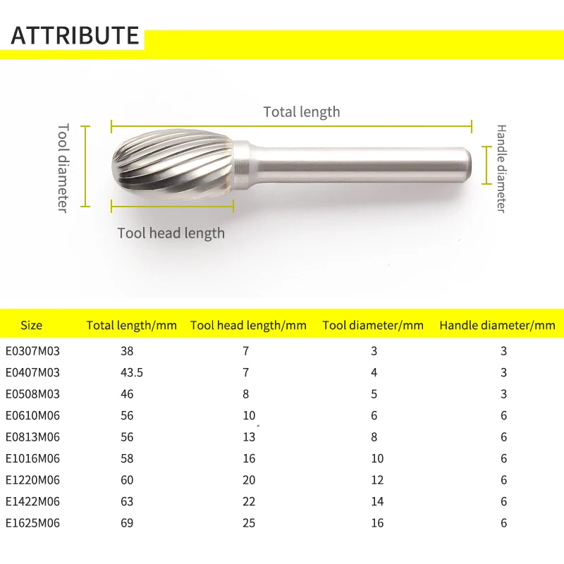 Карбидная Вольфрамовая сталь овального типа, 1 шт. вращающаяся мойка с одним отверстием, Шлифовальная головка, инструмент для резьбы по дереву в форме е
