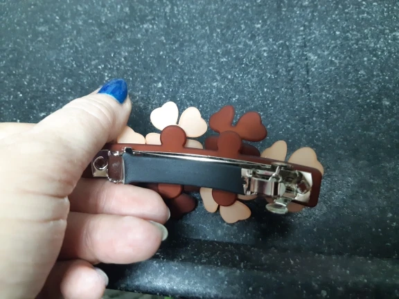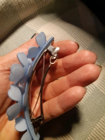 Очень красивый. Средний размер. У моей дочери очень густые волосы, и этот зажим для волос не может держать все это. Мы просто используем его с частью волос, с другой частью вниз. Выглядит потрясающе!