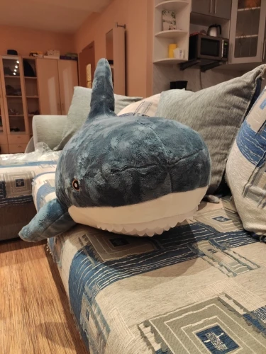 классная акула! сшита отлично, без набивки. пришла достаточно быстро.