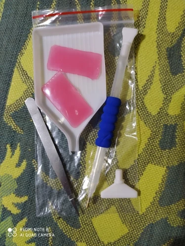 алмазкой очень довольна. пропечатка хорошая, заломов нет картина была на валике. инструмент хороший не довольна пинцетом он не соответствует заявленному очень хлипкий