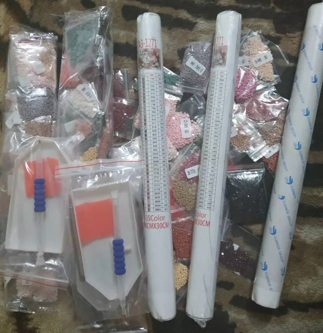 Заказ пришёл вовремя, картина намотана на валик, правда края помялись, но не кретично. Стразы в зиппакетах. Всё замечательно, только заказывала круглые стразы, а прислали квадратные.