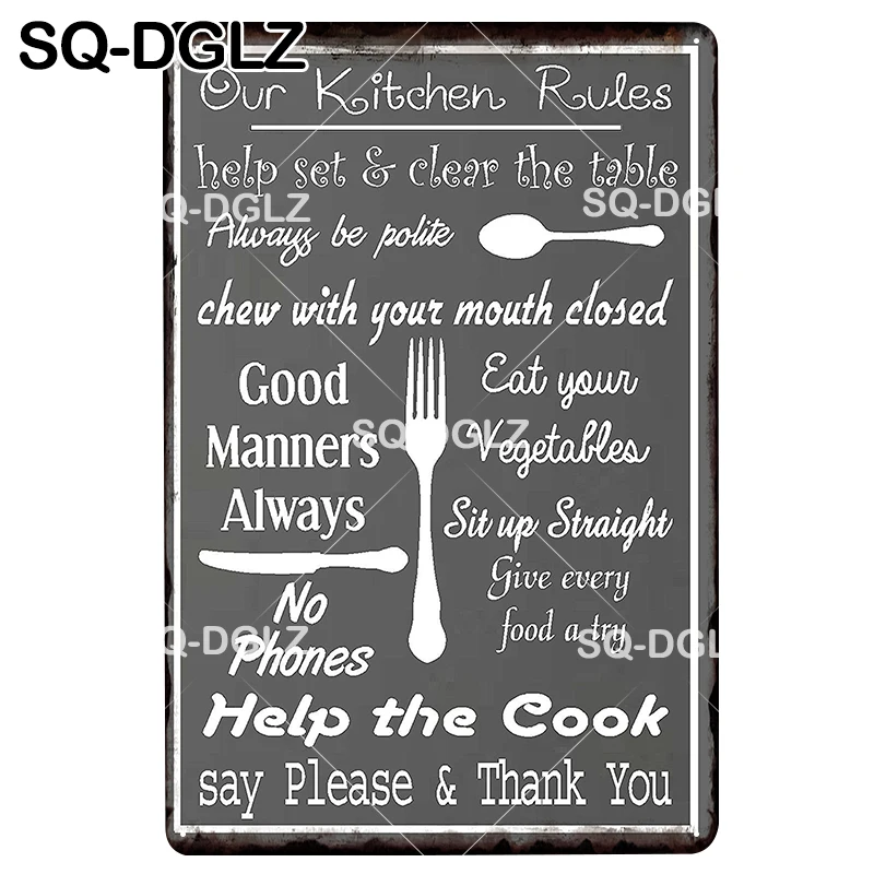 SQ-DGLZ Новый нашей Кухня правила помогают Кука жестяная вывеска Настенный декор Кухня Изделия из металла живопись таблички Ванная комната правило Арт плакат