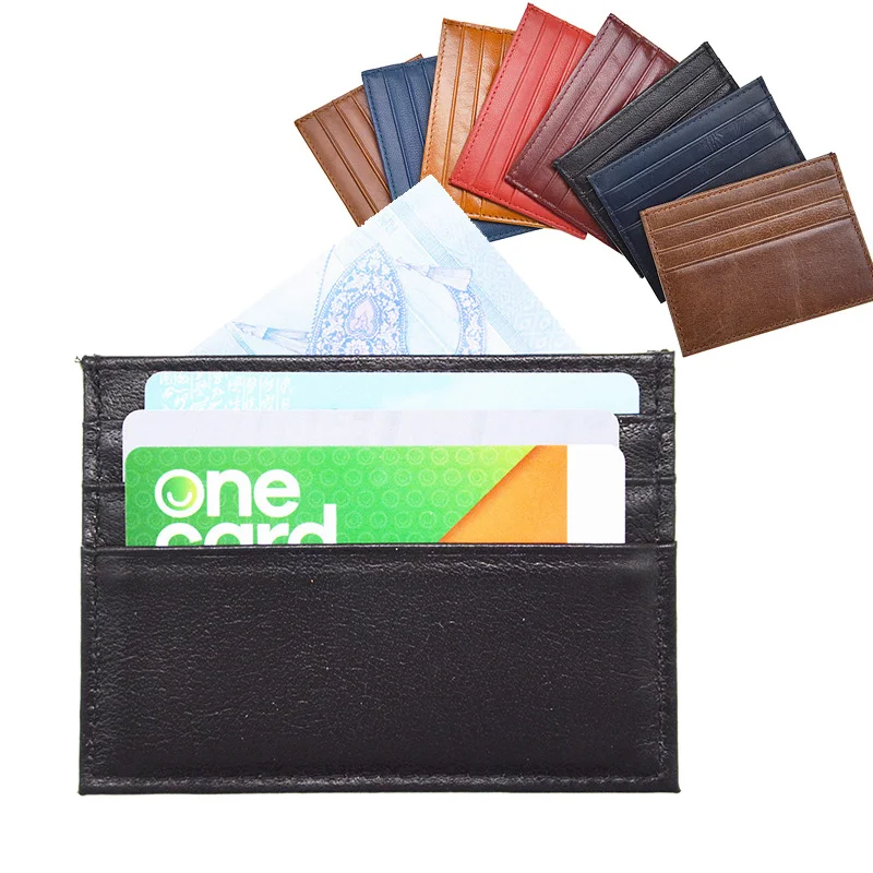 100% натуральная коровья кожа держатель для карт плоский винтажный Цветной глянцевый чехол для удостоверения личности с несколькими слотами Тонкий чехол для карт пользовательское имя логотип компании