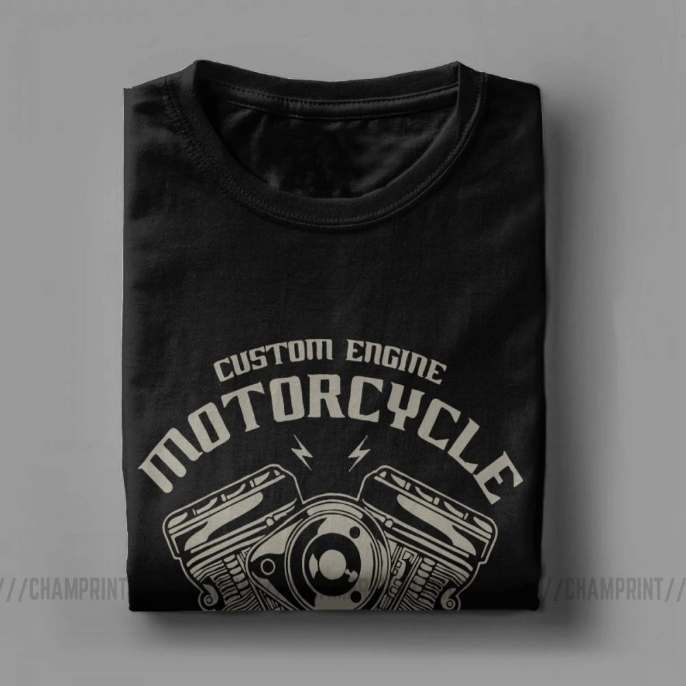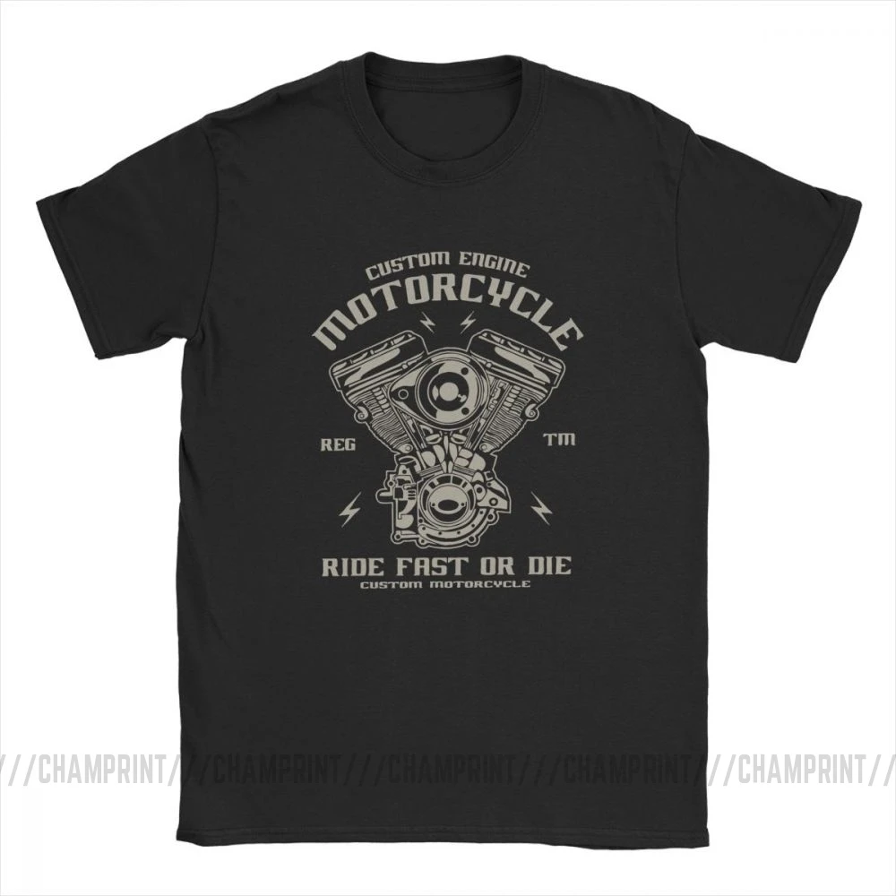 Мужские футболки с байкерским Мотором для езды на мотоцикле, Забавные футболки с коротким рукавом, топы с круглым вырезом, 100% хлопок, футболка с принтом