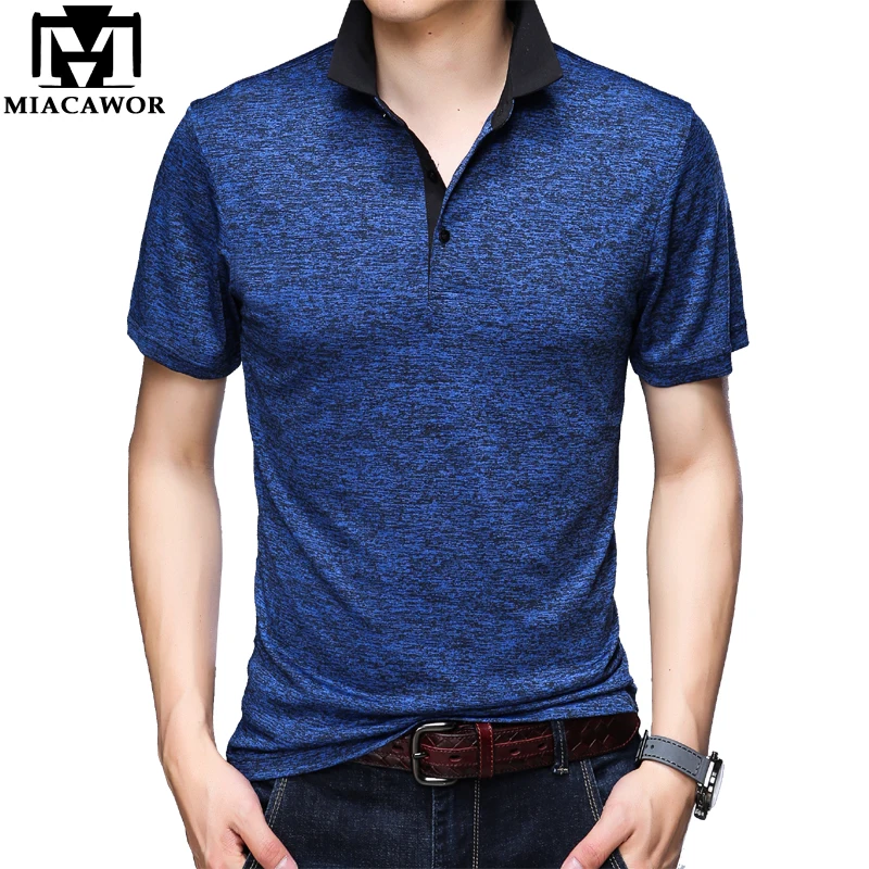MIACAWOR, оригинальная мужская рубашка-поло, модная Однотонная футболка, мужская приталенная рубашка с коротким рукавом, мужские топы, футболки T748