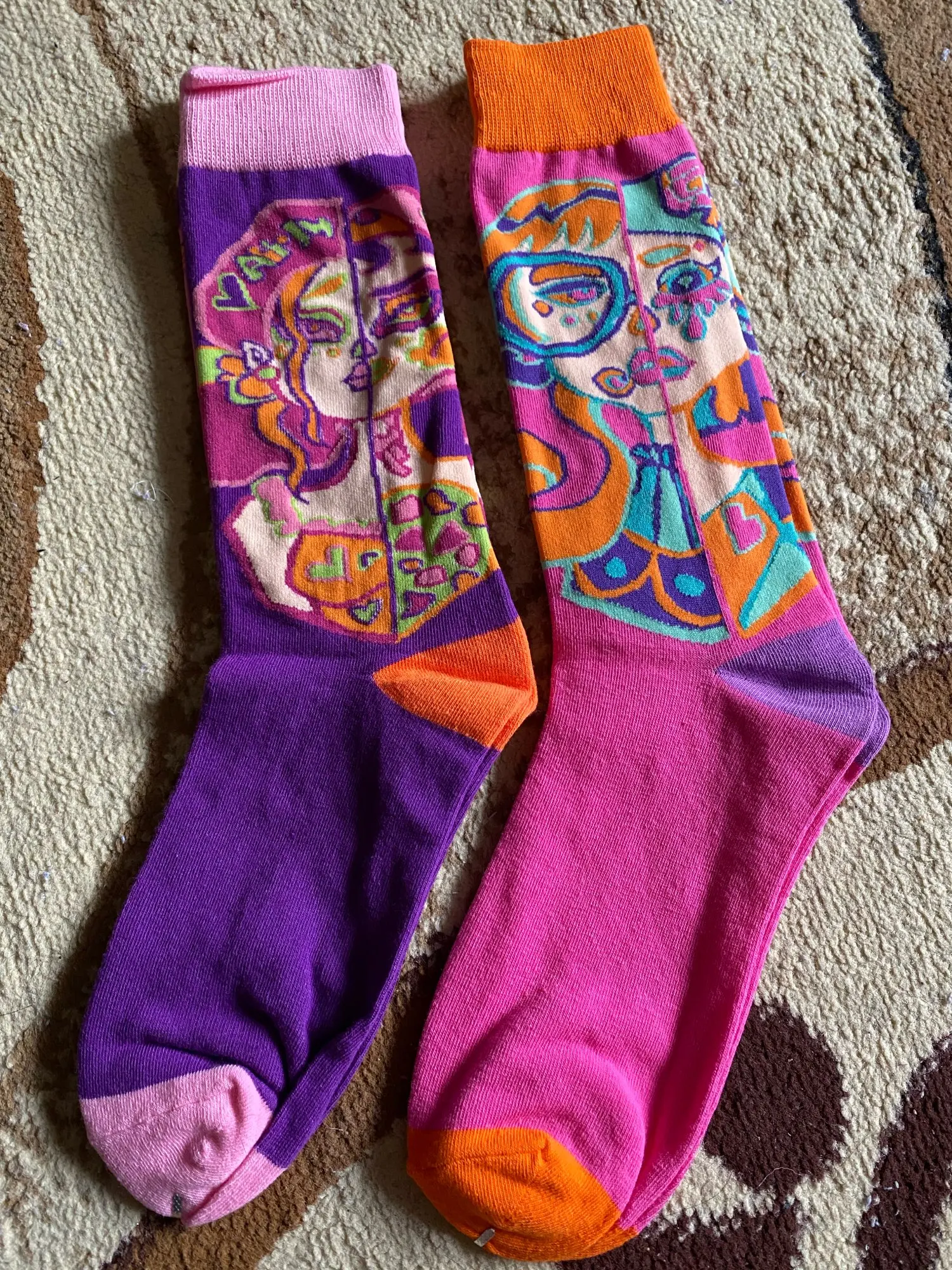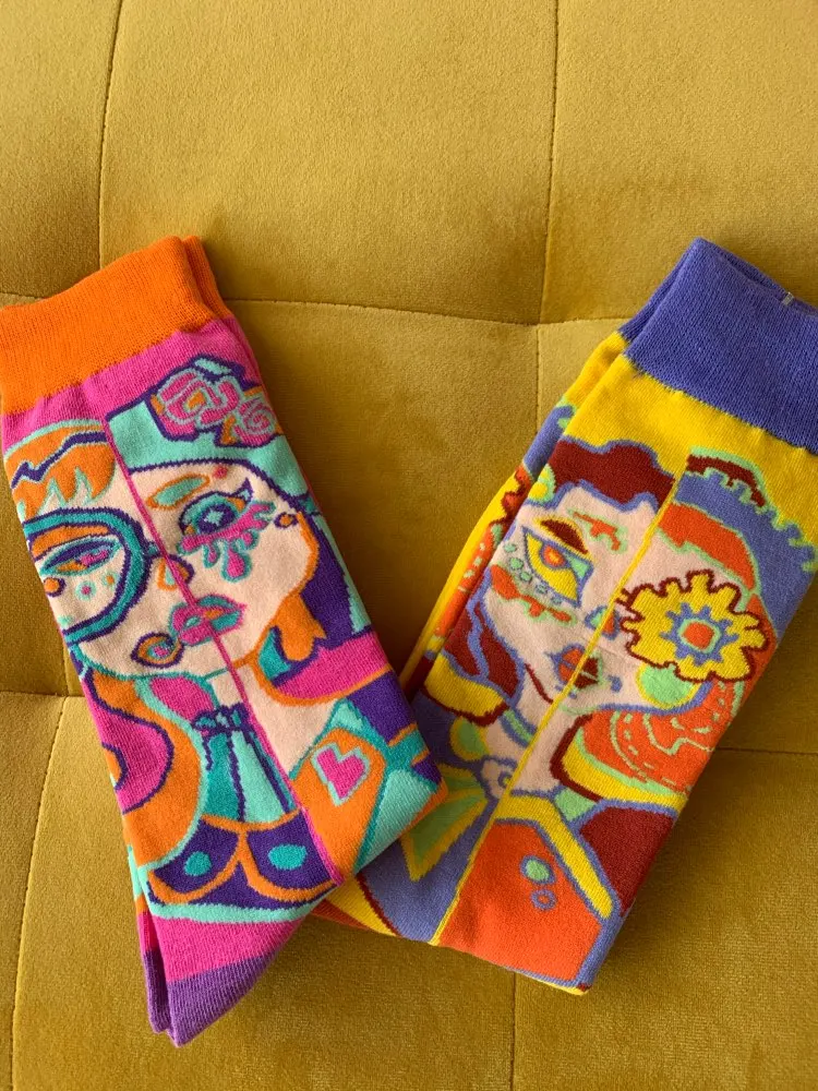 Очень яркие и красивые.Качество хорошее,мягкие,не синтетика.У меня нога 40,подошли хорошо.Высокие гольфы.