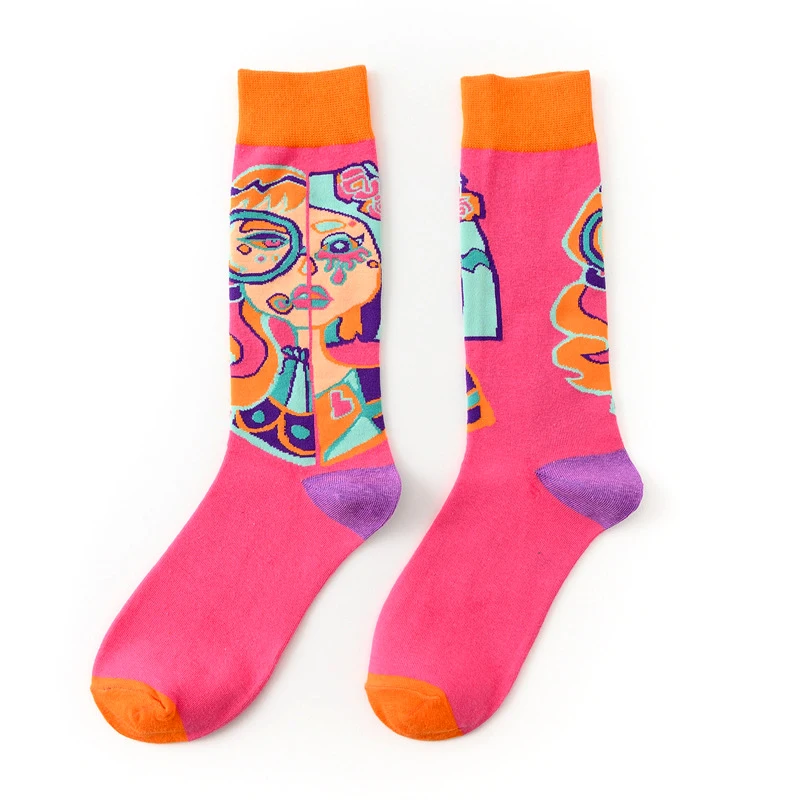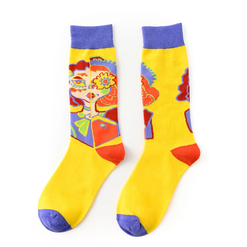 Носки мужские, для скейтборда, с рисунком маслом, короткие, сумасшедший, счастливый хлопок