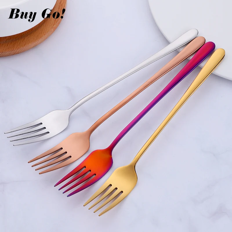 Вилка из нержавеющей стали, с длинной ручкой, 8 цветов