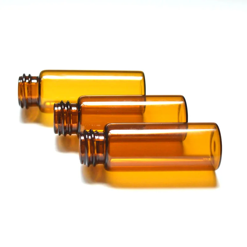 5 шт. мини 1 мл 2 мл 3 мл 5 мл янтарные духи образец стеклянная бутылка с закручивающейся крышкой без отверстия маленькие эфирные масла прозрачные флаконы