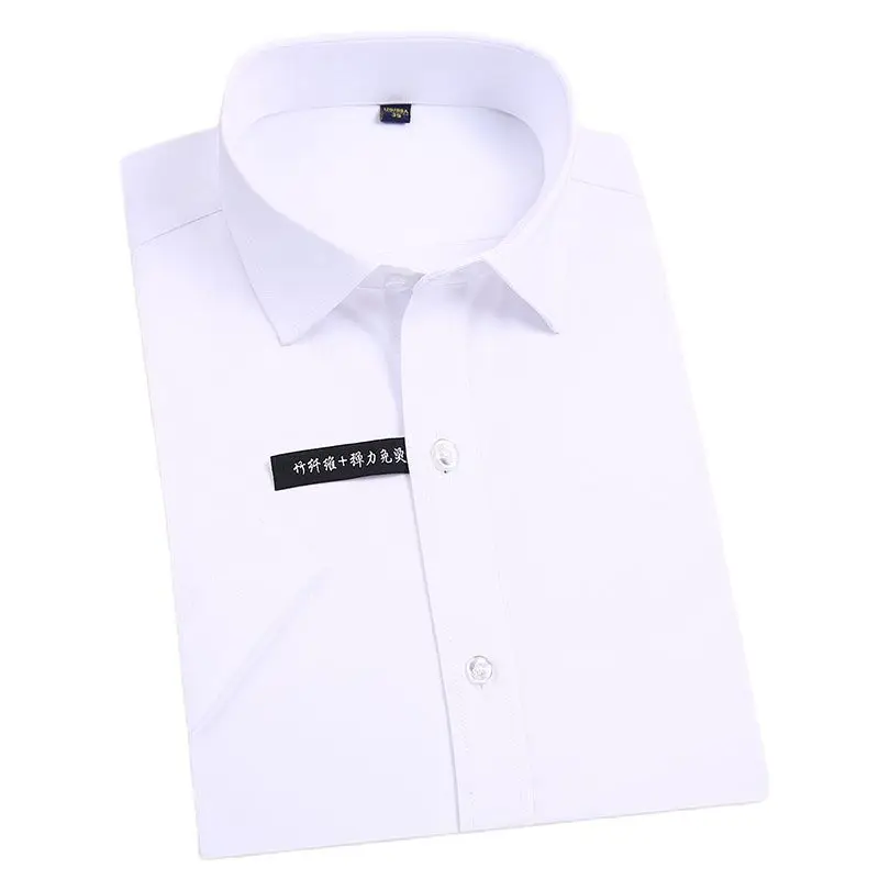 S-5XL летнее платье рубашка с короткими рукавами из бамбукового волокна, обычные размеры, повседневные брюки, однотонные рубашки для мужчин белого и черного цвета размера плюс эластичная и мягкая ткань